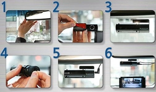 Установить прибор в салоне автомобиля очень просто! Регистратор крепится на лобовое стекло при помощи двустороннего скотча. Преимущество такого способа в том, что при резком перепаде температуры или в морозную погоду аппарат не отвалится от крепления, как это могло бы быть в случае с присоской. Снять прибор очень просто — одним нажатием специальной кнопки. Компактная модель не закрывает обзора во время движения.