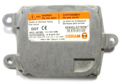 Блок розжига OSRAM Xenaelectron 35XT5-3-D1/12V – превосходное устройство, созданное по последним технологиям. Используется для установки на американские автомобили Lincoln Navigator, Town Car, Cadillac Escalade, STS, CTS, а также некоторые модели BMW E90, Skoda Octvia A5 и др. Посредством такого прибора Вы сможете обеспечить холодный поджег ксеноновой лампы до максимальной яркости за 1 секунду. Подходит для установки на лампы D1.