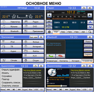 Прибор читает множество видео-, аудиоформатов и даже текстовые файлы: MP3, WMA, WAVE, MPEG1/2, MPEG4, WMV, JPEG, GIF, PNG, BMP, MS-Word, Excel, PowerPoint, Adobe PDF, *.txt. Для радио- и телелюбителей есть FM и аналоговый тюнеры. Кстати, музыку можно прослушивать, не прекращая при этом работу навигации.