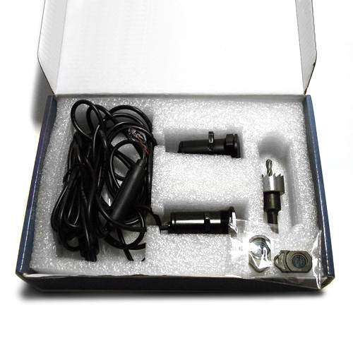 2. Просверлите отверстие под лезерный проектор фрезой, входящей в комплект лазеров. Предварительно убедившись, что лазер не будет препятствовать каким-либо элементам, внутренностям двери.