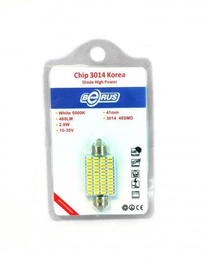 Светодиодная софитная лампа 1041 2.8W предназначена для освещения салона. Состоит из 48 ярких диодов. Лампа намного ярче обычных галогеновых, отлично освещает дорогу ночью и  в дождливую погоду. Цвет свечения со временем не изменяется. Служит такая лампа очень долго, при этом потребляет незначительное количество энергии.