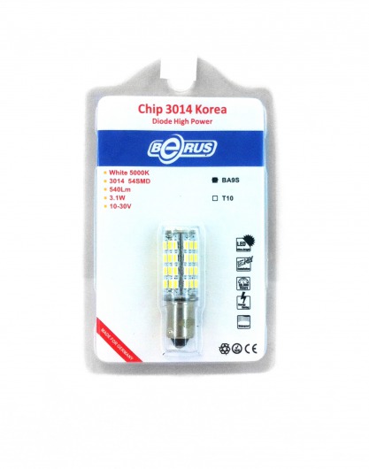 Светодиодная лампа BA9S 3.1W предназначена для установки в задние габариты, освещение номерного знака. Она намного ярче обычных галогеновых ламп, отлично освещает дорогу даже ночью и в дождливую, туманную погоду. Цвет свечения со временем не изменяется. Служит такая лампа очень долго, при этом потребляет незначительное количество энергии.