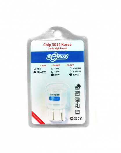 Светодиодная лампа T20 2.6W предназначена для установки в противотуманные фары и указатели поворотов. Она намного ярче обычных галогеновых ламп, отлично освещает дорогу даже в самую непроглядную темноту и сильный ливень. Цвет свечения со временем не изменяется. Служит такая лампа очень долго, при этом потребляет незначительное количество энергии.