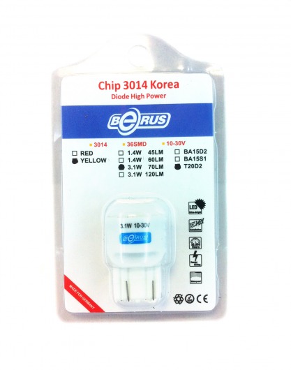 Светодиодная лампа T20 3.1W предназначена для установки в противотуманные фары и указатели поворотов. Она намного ярче обычных галогеновых ламп, отлично освещает дорогу даже в самую непроглядную темноту и сильный ливень. Цвет свечения со временем не изменяется. Служит такая лампа очень долго, при этом потребляет незначительное количество энергии.