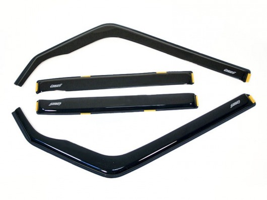 Дефлекторы боковых окон Азард изготовлены из прочного пластика, они крепкие и долговечные. Данная модель является вставной. Это значит, что для установки вам не придется ничего сверить: ветровик легко вставляется в уплотнитель боковых стекол.