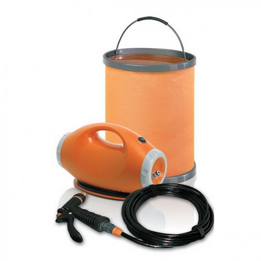 Устройство создает высокое давление воды, и при этом ее нужно совсем немного, что очень удобно в «полевых» условиях. А непосредственно воду вы можете налить как в складное ведро-трансформер, которое входит в комплект, так и в любую другую емкость (обычное ведро, бочку). Эргономичный пистолет-распылитель с регулировкой струи поможет вам аккуратно промыть все места в автомобиле – и доступные, и труднодоступные. А сетчатый фильтр защитит распылитель от загрязнений.