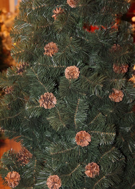 Прелестная елка «Карнавальная» обладает классическим вытянутым силуэтом и плотной зеленой хвоей. Эта елочка идеально подойдет в небольшое помещение. Ветки заканчиваются розеткой из мелких пушистых веточек, в центре которых располагаются шишки. Благодаря этому елка выглядит очень нарядно. А для придания ей праздничного вида, Вам  будет достаточно обычной гирлянды с огоньками.