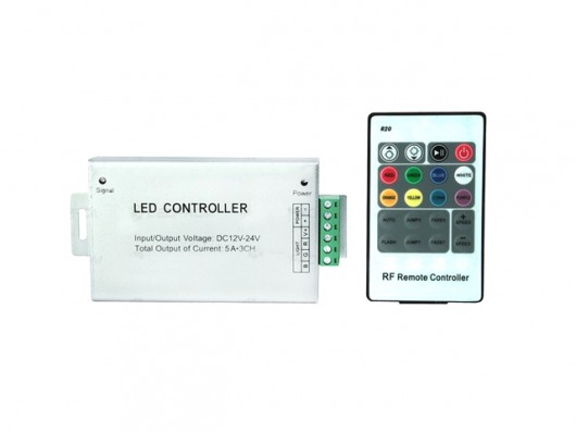 Данный светодиодный контроллер RGB поможет вам создавать разные световые эффекты. Благодаря очень удобному пульту управления вы сможете управлять сменой цветов и яркостью с определенной скоростью.