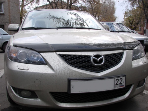 Вопросы и отзывы про Дефлектор капота для Mazda 3 Sedan от 03 г.в. (темный)