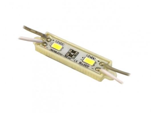 Линейный светодиодный модуль PL 5630-2 IP65 2800Lm — это 2 диода SMD 5630 холодного белого цвета и резисторы с рабочим напряжением 12V, которые находятся в пластиковом корпусе. Яркость 1 диода составляет 70Lm, а всей упаковки — 2800Lm, что дает вам яркое и насыщенное свечение. Корпус залит двухкомпонентным компаундом. Поэтому вы можете использовать светодиодный модуль led в условиях повышенной влажности и резкого перепада внешней температуры от -30 до +50 градусов.