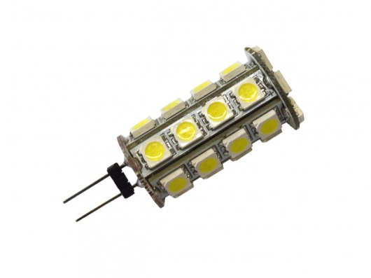 Светодиодная лампа G4/30-5050 с 30 светодиодами SMD 5050 и напряжением 10-30V это отличная альтернатива галогенным лампам и лампам накаливания с цоколем G4. Яркость данной лампы составляет 12-15 Лм на 1 диод. Цвет свечения лампы — холодный белый.