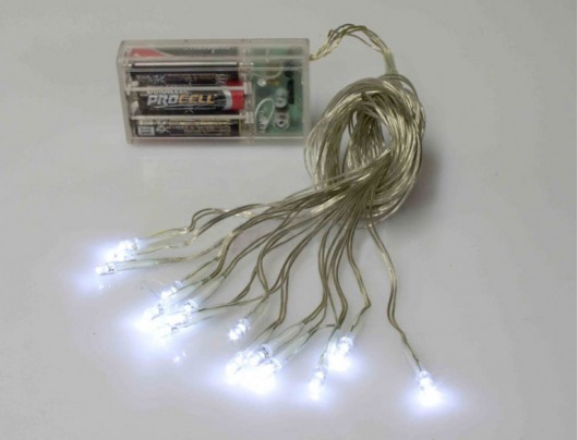 Длина данной световой гирлянды составляет 0,5 метра. Светодиоды распложены на прозрачном проводе, поэтому ничто не затмевает красивое свечение led гирлянды. А низкое энергопотребление поможет вам не задумываться о частой замене батареек.
