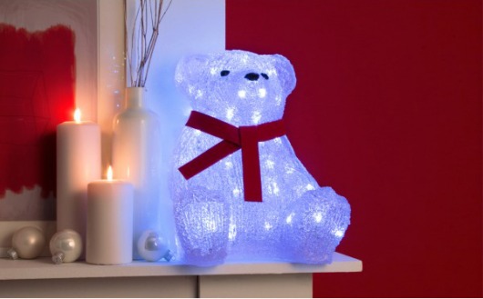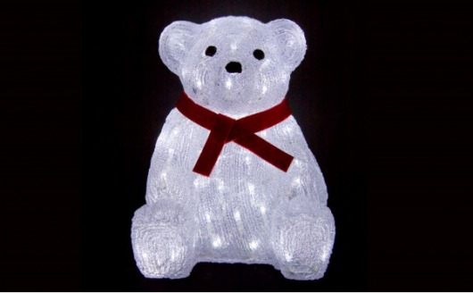 Световая фигура сделана в виде симпатичного мишки. с красным  шарфиком. А 60 ярких светодиодов белого цвета делают обычного игрушечного медведя просто волшебным! Световой мишка оригинально украсит ваш дом! Если вы его поставите его на полочку на видном месте, то внимание ваших гостей просто обеспечено!