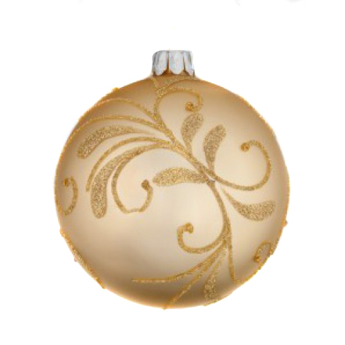 Новогодний шар "Золотые нити" золотистого цвета сделан из стекла и в диаметре составляет 8 см. Такие стеклянные шары действительно украсят и сделают неповторимой вашу новогоднюю елку.