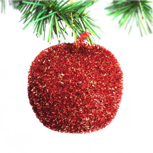Игрушка на елку в виде блестящего красного яблока диаметром 10 см будет эффектно, стильно и оригинально смотреться на любой елке. Убедитесь в этом сами и удивите своих гостей. Только представьте, как будут обрадованы дети, увидев, какой потрясающий "урожай" вместо привычных шишек оказался на елке!