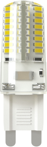 Светодиодная лампа X-Flash Finger с цоколем G9 подходит для светильников акцентного и декоративного освещения, и вы сможете установить ее в настольную лампу, бра или люстру. Данная модель рассчитана на напряжение 220 В. Мощность диодной лампы X-Flash — 3 Вт., яркость — 230 Лм, а температура свечения – 4000 K (это нейтральный белый свет). Состоит LED лампа из 64 светодиодов и имеет широкий угол свечения – 270º. Прозрачное силиконовое покрытие гарантирует стойкость к повреждениям и эффективное рассеивание тепла.