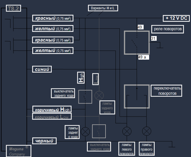 Удлинитель сигналов поворота MEGUNA T8.2 специально разработан для автомобилей, у которых реле поворотов управляется с помощью тока с центральным положительным проводом.