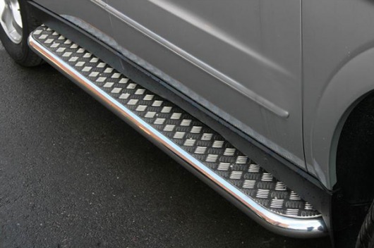 Пороги на SsangYong Actyon Sport – это боковые подножки из нержавеющей стали диаметром 60 мм, которые позволяют более комфортно входить и выходить из салона автомобиля. Подножки SsangYong Actyon Sport очень прочные, надежные и долговечные: они не боятся коррозии, сколов и царапин и выдерживают большие нагрузки.