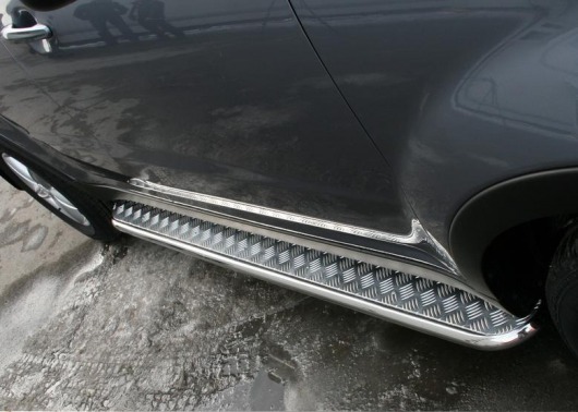 Пороги на SsangYong Actyon – это боковые подножки из нержавеющей стали диаметром 42 мм, которые позволяют более комфортно входить и выходить из салона автомобиля. Подножки SsangYong Actyon очень прочные, надежные и долговечные: они не боятся коррозии, сколов и царапин и выдерживают большие нагрузки.