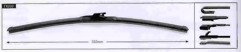 Trico Flex FX550 — это бескаркасная щетка стеклоочистителя, которой вы можете пользоваться как летом, так и зимой. Длина дворника Trico FX550 составляет 55 см. Стеклоочиститель Trico FX550 оснащен мультиадаптером и поэтому легко устанавливается на автомобиль любой марки со следующим креплением: