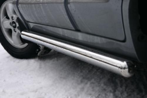 Боковые пороги-подножки сделаны специально для автомобилей Hyundai Santa Fe от 2005 г.в., поэтому устанавливаются достаточно просто и без повреждений корпуса. Помимо этого, стальные пороги-трубы для Хендай Санта Фе смотрятся очень стильно и эффектно. Они добавят вашему авто еще больше солидности и внушительности.