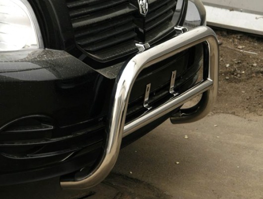 Передняя решетка Dodge Caliber (кенгурятник) – это защитная дуга на бампер из нержавеющей стали диаметром 60 мм.