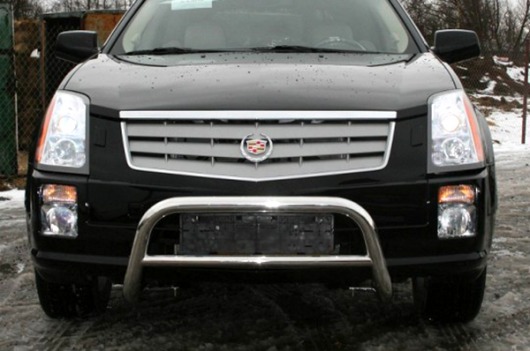 Передняя решетка Cadillac SRX (кенгурятник) – это защитная дуга на бампер из нержавеющей стали диаметром 60 мм.