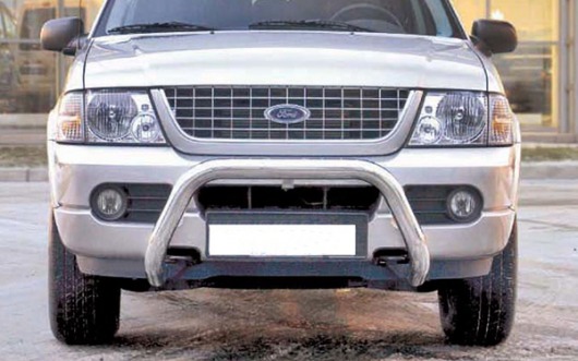 Передняя решетка Ford Explorer (кенгурятник) – это защитная дуга на бампер из нержавеющей стали диаметром 76 мм.