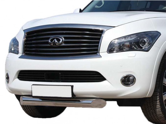 Труба на бампер Infiniti QX56 защищает передний бампер автомобиля от различных механических повреждений при мелких ДТП и неудачных парковках, а также незаменима при езде по бездорожью. А кроме этого, труба на передний бампер Инфинити QX56 смотрится очень стильно и эффектно.