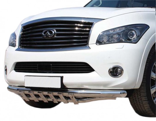 Защита переднего бампера для Infiniti QX56 – это двойная труба на бампер из нержавеющей стали диаметром 76/60 мм.