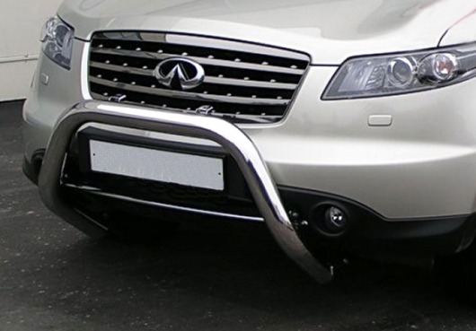 Передняя решетка Infiniti FX (кенгурятник) – это защитная дуга на бампер из нержавеющей стали диаметром 76 мм.