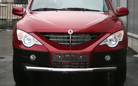 Труба на бампер SsangYong Actyon защищает передний бампер автомобиля от различных механических повреждений при мелких ДТП и неудачных парковках, а также незаменима при езде по бездорожью. А кроме этого, труба на передний бампер Санг Енг Актион смотрится очень стильно и эффектно.