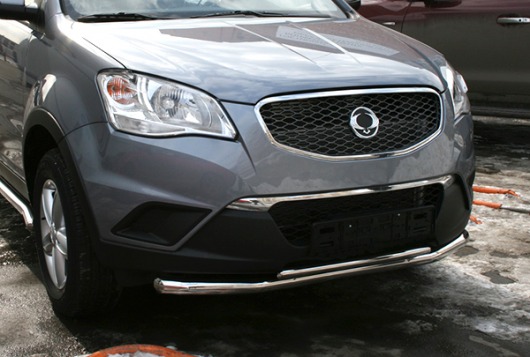 Защита переднего бампера для SsangYong Actyon – это двойная труба на бампер из нержавеющей стали диаметром 60/42 мм.