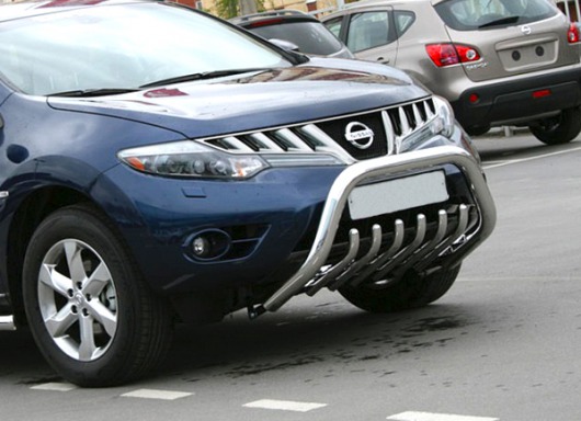 Передняя решетка Nissan Murano (кенгурятник) – это защитная дуга на бампер из нержавеющей стали диаметром 76 мм.