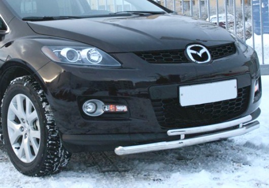 Защита переднего бампера для Mazda CX-7 – это двойная труба на бампер из нержавеющей стали диаметром 60/42 мм.