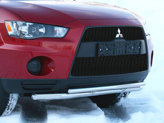 Труба на бампер Mitsubishi Outlander XL защищает передний бампер автомобиля от различных механических повреждений при мелких ДТП и неудачных парковках, а также незаменима при езде по бездорожью. А кроме этого, труба на передний бампер Митсубиси Аутлендер XL смотрится очень стильно и эффектно.