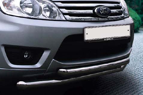 Защита переднего бампера труба предназначена для автомобилей Ford Escape от 2008 г.в. Вам не придется подгонять защиту под размеры бампера вашего авто. И с монтажом проблем не возникнет: установка защиты переднего бампера производится в штатные отверстия, а значит, необходимость сверлить кузов отпадает.