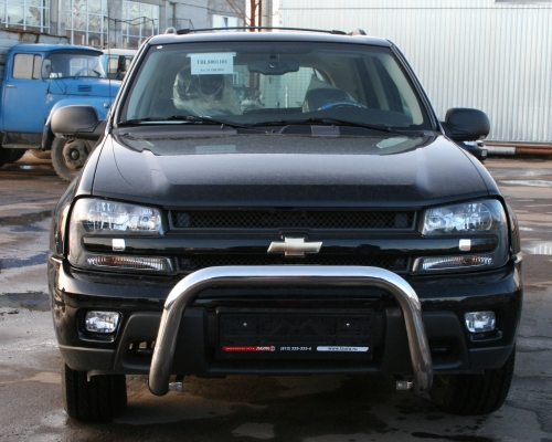 Передняя решетка Chevrolet Trail Blazer (кенгурятник) – это защитная дуга на бампер из нержавеющей стали диаметром 76 мм.