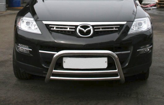 Защитная решетка переднего бампера предназначена для автомобилей Mazda CX-9 от 2008 г.в. Вам не придется подгонять передний кенгурятник под размеры кузова вашего авто. И с монтажом проблем не возникнет: установка кенгурятника Mazda CX-9 производится в штатные отверстия, а значит, необходимость сверлить кузов отпадает.