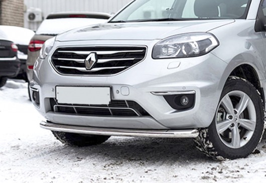 Труба на бампер Renault Koleos защищает передний бампер автомобиля от различных механических повреждений при мелких ДТП и неудачных парковках, а также незаменима при езде по бездорожью. А кроме этого, труба на передний бампер Рено Колеос смотрится очень стильно и эффектно.