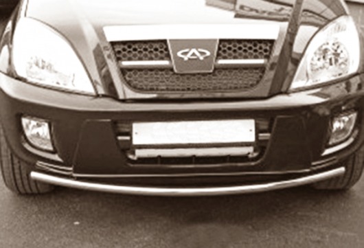 Защита переднего бампера труба предназначена для автомобилей Cherry Tiggo от 2005 г.в. Вам не придется подгонять защиту под размеры бампера вашего авто. И с монтажом проблем не возникнет: установка защиты переднего бампера производится в штатные отверстия, а значит, необходимость сверлить кузов отпадает.