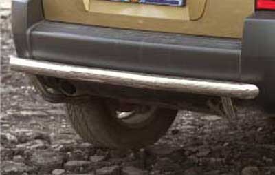 Защита заднего бампера труба предназначена для автомобилей Hyundai Tucson. Вам не придется подгонять защиту под размеры бампера вашего авто. И с монтажом проблем не возникнет: установка защиты заднего бампера производится в штатные отверстия, а значит, необходимость сверлить кузов отпадает.