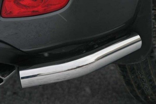 Защита заднего бампера для Hyundai Santa Fe – это защитные уголки на бампер из нержавеющей стали диаметром 60 мм.