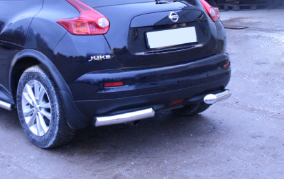 Защита заднего бампера уголки предназначена для автомобилей Nissan Juke от 2011 г.в. 4х4. Вам не придется подгонять защиту под размеры бампера вашего авто. И с монтажом проблем не возникнет: установка защиты заднего бампера производится в штатные отверстия, а значит, необходимость сверлить кузов отпадает.