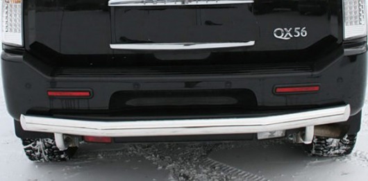 Труба на задний бампер Infiniti QX 56 защищает задний бампер автомобиля от различных механических повреждений при столкновениях на дороге и неудачных парковках. А кроме этого, защита заднего бампера для Инфинити QX 56 — это дополнительная деталь тюнинга.