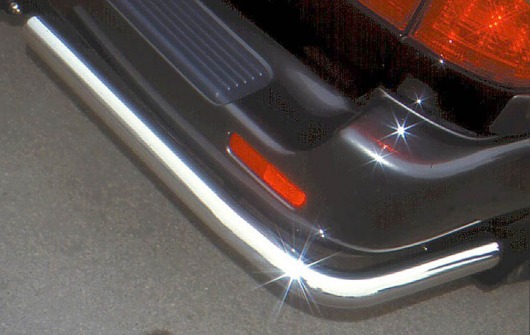 Уголки на задний бампер Toyota LC 100 защищают задний бампер автомобиля от различных механических повреждений при столкновениях на дороге и неудачных парковках. А кроме этого, защита заднего бампера для Тойота — это дополнительная деталь тюнинга.