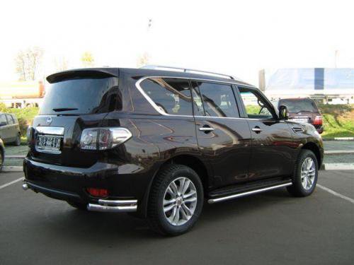 Уголки на задний бампер Nissan Patrol защищают задний бампер автомобиля от различных механических повреждений при столкновениях на дороге и неудачных парковках. А кроме этого, защита заднего бампера для Ниссан — это дополнительная деталь тюнинга.