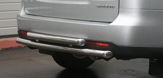 Защита заднего бампера для SsangYong Kyron – это двойная труба на бампер из нержавеющей стали диаметром 60/60 мм.