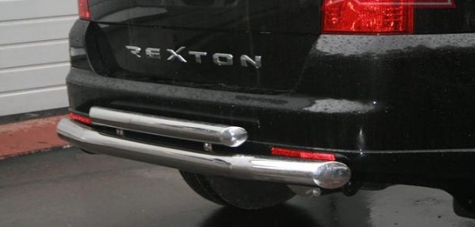 Защита заднего бампера для SsangYong Rexton – это двойная труба на бампер из нержавеющей стали диаметром 76/60 мм.