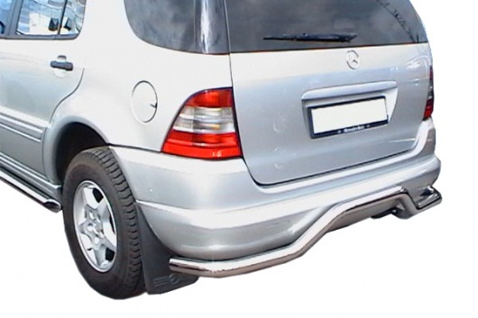Защита заднего бампера "волна" предназначена для автомобилей Mercedes-Benz M-Class 1997-2001 г.в. Вам не придется подгонять защиту под размеры бампера вашего авто. И с монтажом проблем не возникнет: установка защиты заднего бампера производится в штатные отверстия, а значит, необходимость сверлить кузов отпадает.